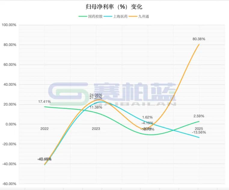 国药控股今年一季度销售费用较2024年同期有所下降;上海医药一季度的销售费用较去年也有所下降,同比-16.11%;九州通一季度的销售费用较去年有所上升,同比+13.22%。